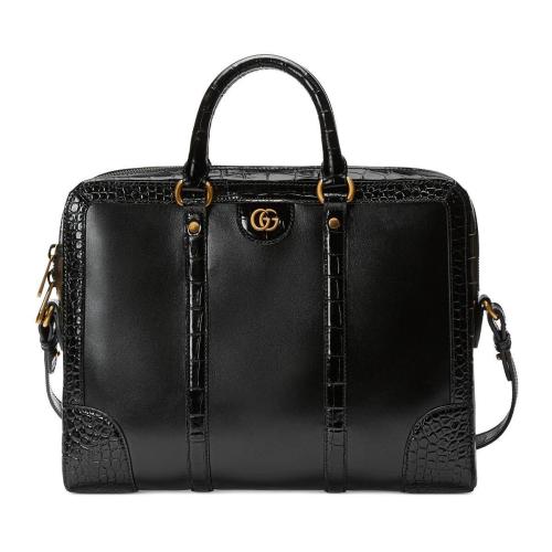 GUCCI古驰 22年秋冬 男士 饰双G鳄鱼皮滚边公文包 702137 AAATE 1000