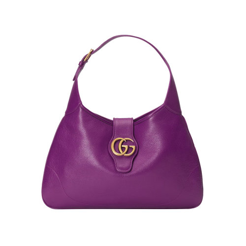 GUCCI/古驰 23春夏新款 Aphrodite系列 女士中号紫色皮革金色饰面双G磁扣调节肩带单肩包726274AAA9F5235