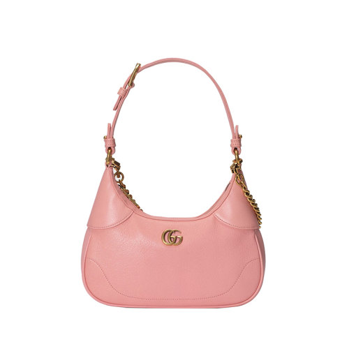 GUCCI/古驰 23春夏新款 Aphrodite系列 女士小号浅粉色皮革金色饰面双G调节肩带拉链开合单肩包731817AAA9F5815