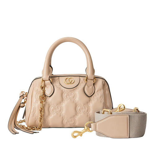 GUCCI/古驰 22新款 女士米色GG压纹绗缝皮革金色双G标志拉链开合单肩手提包?702251UM8HG9500