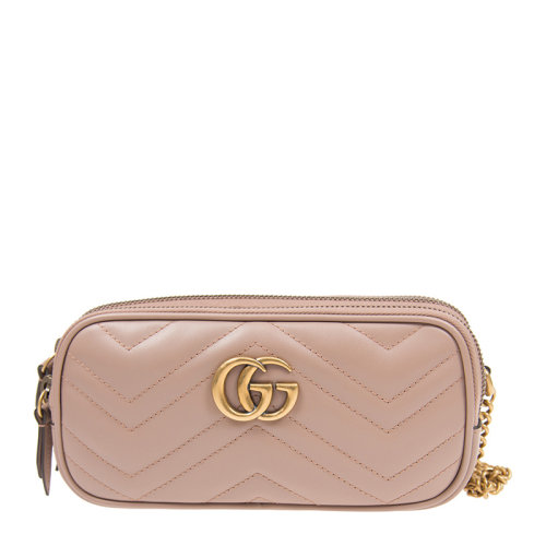 GUCCI/古驰 GG Marmont系列女士纯色波浪纹绗缝牛皮经典金属双G字母徽标装饰双拉链开合迷你单肩包斜挎包链条包女包 546581-DTDCT 多色可选