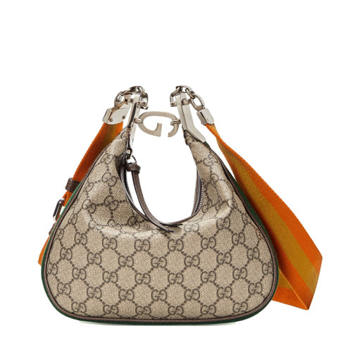 GUCCI/古驰 22新款 女士经典米色乌木色老花帆布红绿织带饰边新月造型G钩扣小号单肩手提包?69940996GRN4091