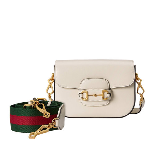 GUCCI/古驰 Horsebit 1955系列 女士迷你白色皮革复古翻盖单肩斜挎包65857418YSG9068