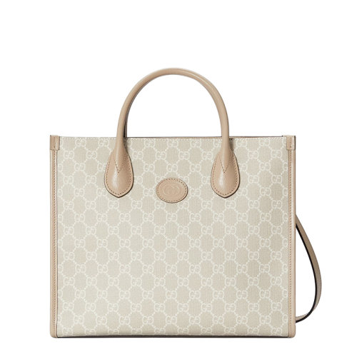 GUCCI/古驰 22春夏新款 女士小号米白色老花帆布皮革滚边手提单肩包托特包659983UULBT9683