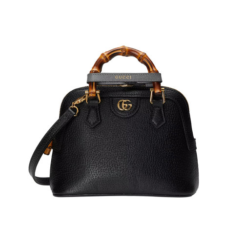 GUCCI/古驰 23春夏新款 Diana系列 女士黑色皮革复古金色细节双G拆卸调节肩带竹节手柄单肩斜挎手提包715775DJ24G1092