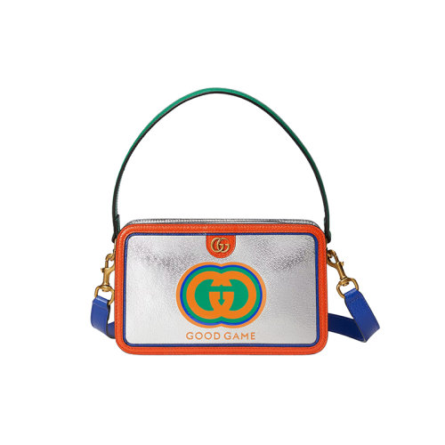 GUCCI/古驰 23春夏新款 Good Game系列 男士银色金属丝皮革配彩色皮革饰边双G拆卸调节肩带拉链开合单肩手提包720535AAA6I8143