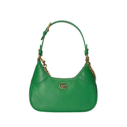 GUCCI/古驰 23春夏新款 Aphrodite系列 女士小号绿色皮革金色饰面双G调节肩带拉链开合单肩包731817AAA9F3727
