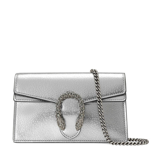 GUCCI/古驰 经典款Dionysus系列 女士超迷你银色皮革银头蛇扣银链单肩斜跨酒神包4764321TRBN8173