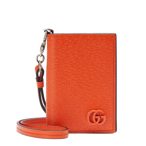 GUCCI/古驰 22新款GG Marmont系列 男士橙色皮革饰同色系徽标树脂扣钱包卡包挂脖包?7007071T56F7519