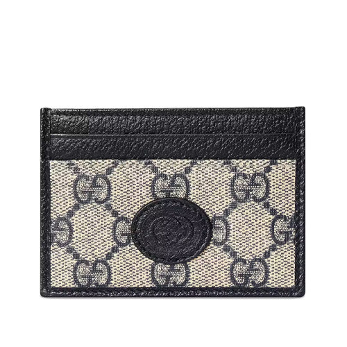 GUCCI/古驰 22春夏新款 男士米色/蓝色老花帆布椭圆双G贴标薄款卡夹 673002K9GSN4075