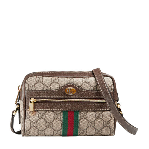 GUCCI/古驰 21新款Ophidia系列 迷你老花帆布棕色皮革滚边经典条纹织带复古单肩斜挎包67168296IWT8745