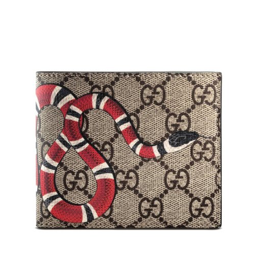 GUCCI/古驰 经典款GG Supreme男士米色帆布蛇纹印花皮革对折钱包451268 K551N 8666