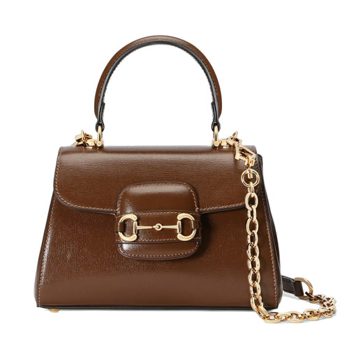 GUCCI/古驰 22新款Horsebit 1955系列 女士迷你浅棕色皮革马衔扣金扣金链单肩手提T型链条包703848AAA7G2361