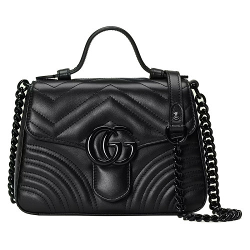 Gucci/古驰 22新款 Marmont系列 女士迷你黑色人字纹绗缝皮革黄铜细节陶瓷饰面拆卸链条肩带单肩斜挎包702563DTDFV1000