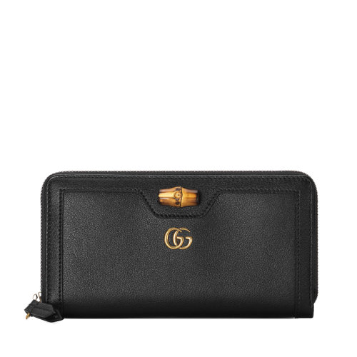 GUCCI/古驰 Diana系列 女士黑色皮革做旧的金色饰面双G竹扣长款钱包65863417Q0T1000