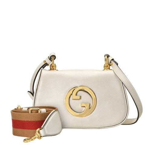 GUCCI/古驰 22新款Blondie系列 女士迷你白色皮革圆形徽标金扣金链单肩斜挎包?698643UXXAG9161