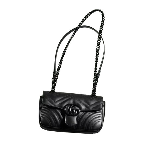 Gucci/古驰 22新款 Marmont系列 女士黑色人字纹绗缝皮革黄铜细节黑色陶瓷饰面翻盖开合肩背手提斜挎包446744DTDFV1000