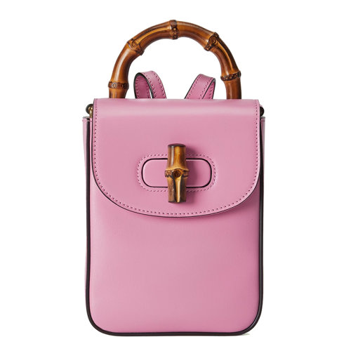 GUCCI/古驰 22新款Gucci Love Parade系列 女士迷你粉色皮革饰面竹节手柄竹制细节肩背手提包702106UZY0T5814