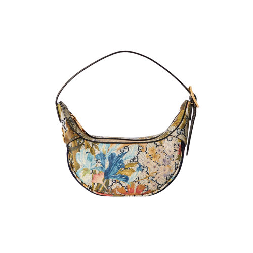 GUCCI/古驰 23春夏新款 Ophidia GG Flora系列 女士迷你彩色帆布花卉图案拉链开合金色饰面单肩手提包658551FABAI4073