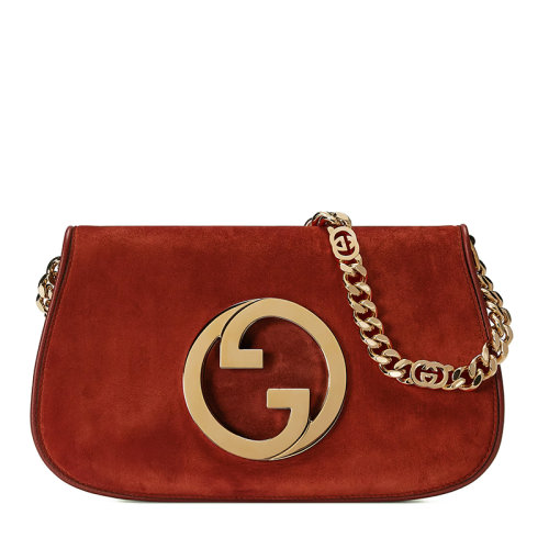 GUCCI/古驰 22新款Blondie系列 女士小号宝石红色绒面革圆形徽标金扣金链单肩斜挎链条包?69926817IPG6720