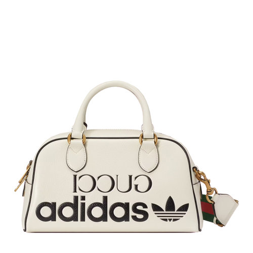 GUCCI/古驰 22新款阿迪达斯联名 男士迷你白色皮革黑色徽印花金扣配红绿织物皮革肩带单肩手提旅行包702397U3ZCT8727