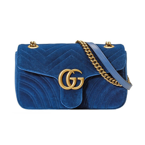 GUCCI/古驰 古琦女包 Marmont系列 经典双G 波浪纹 女士蓝色时尚链条单肩包 443497 K4D2T 4511