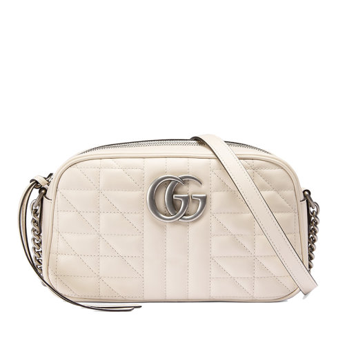 GUCCI/古驰 GG Marmont系列 女士小号白色绗缝皮革复古银饰双G斜挎单肩包447632UM8BN9022