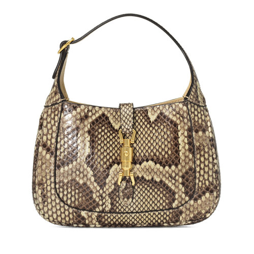 GUCCI/古驰 1961 Jackie系列 米色蟒蛇皮小牛皮欧美迷你斜跨单肩手提斜跨单肩包