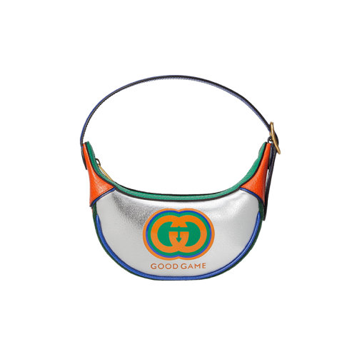 GUCCI/古驰 23春夏新款 Good Game系列 男士银色金属丝皮革配彩色皮革饰边双G拉链开合单肩手提包720530AAA6H8142