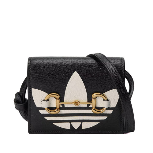 GUCCI/古驰 22新款阿迪达斯联名系列 女士黑色米白色皮革三叶草印花金属马衔扣细节斜挎手拿卡包卡片夹?702248DJ24G1057