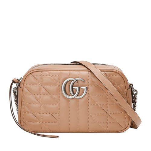 GUCCI/古驰 GG Marmont系列 女士小号玫瑰米色绗缝皮革复古银饰双G斜挎单肩包447632UM8BN2754