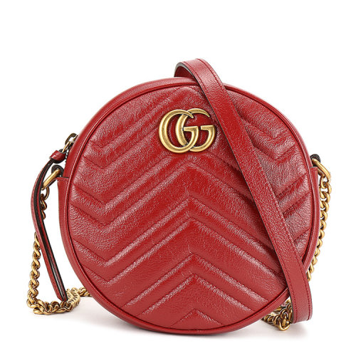 GUCCI/古驰 GG Marmont系列圆形迷你肩背包 皮质圆饼单肩包 550154 0OLET
