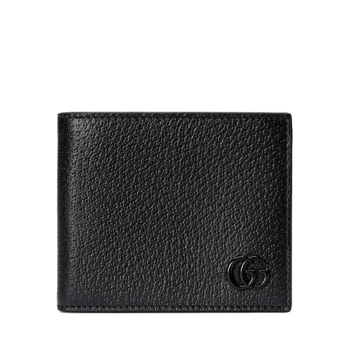 GUCCI/古驰 22春夏新款GG Marmont系列 男士黑色皮革同色调树脂双G装饰双折钱包4287261T56F1000