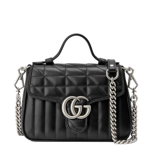 GUCCI/古驰 GG Marmont系列 女士迷你黑色绗缝皮革复古银色饰面双G单肩斜挎手提包583571UM8AN1000