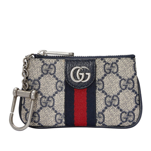 GUCCI/古驰 22春夏新款Ophidia系列 女士米色/蓝色老花帆布红蓝织带配蓝色皮革吊坠双G钥匙包 67172296IWN4076