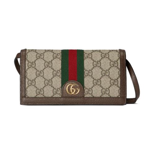 GUCCI/古驰 22新款Matelassé系列 女士浅棕色老花绗缝皮革金扣双折拉链开合钱包卡包723786UM8IG2546