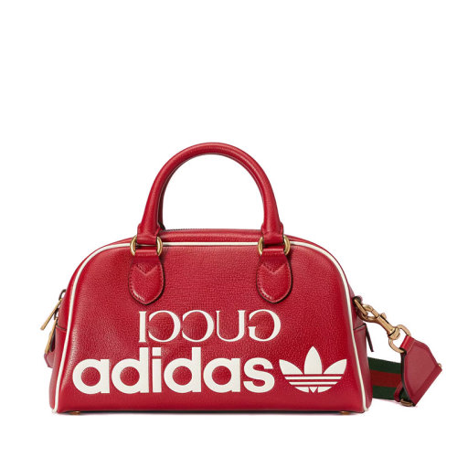 GUCCI/古驰 22新款Adidas联名系列 女士迷你红色皮革饰白色皮革细节主题系列印花金扣配可拆卸红绿织物肩带单肩斜挎手提旅行包702397U3ZCT6563