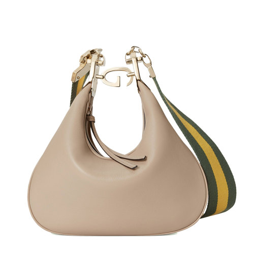 GUCCI/古驰 22新款 女士燕麦色皮革橙色黑色织带滚边新月造型G钩扣小号单肩手提包699409UXWBG9360