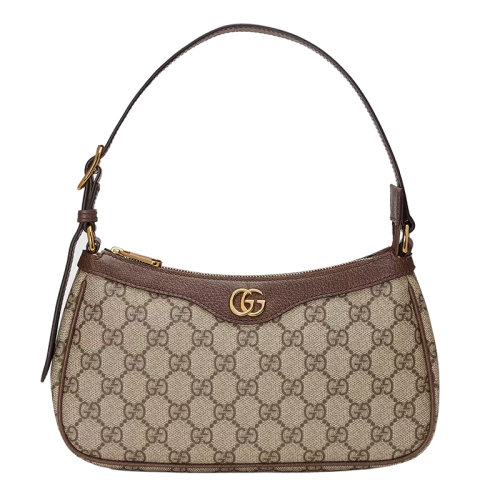GUCCI/古驰 22新款 Ophidia系列 女士小号米色/乌木色帆布棕色皮革双G细节调节手柄拉链开合单肩包735145KAAAD8358