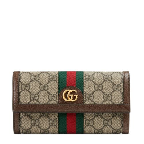 GUCCI/古驰 新款Ophidia GG系列 女士棕色GG Supreme帆布皮革翻盖钱包 52317396IWG8745