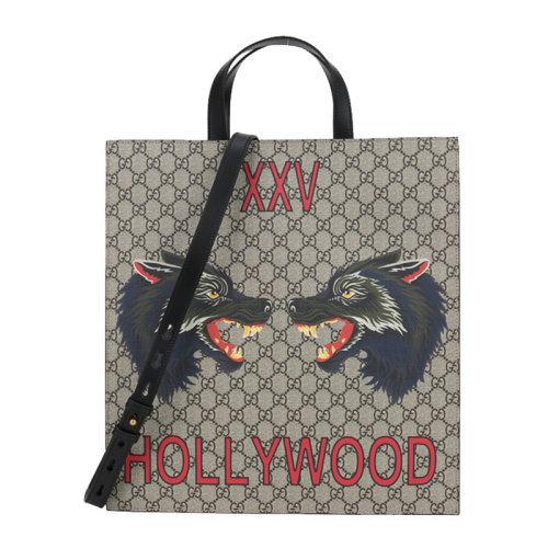 GUCCI/古驰 男女同款中性款乌木色皮革印花手提包单肩包斜挎包女包 450950-9HVAT-8697