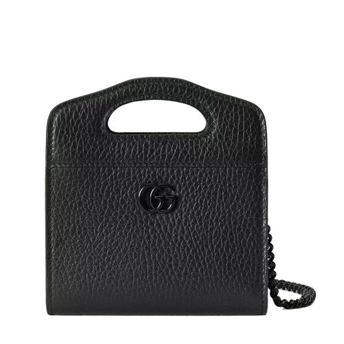 GUCCI/古驰 22春夏新款GG Marmont系列 女士黑色皮革同色系树脂双G点缀手提式钱包卡包70107417WFF1000