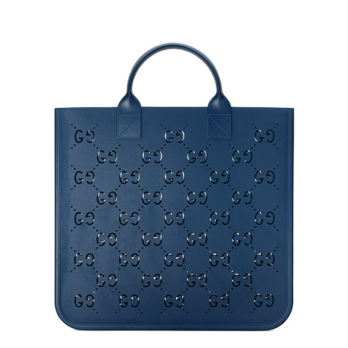 GUCCI/古驰 22新款 儿童蓝色橡胶GG镂空老花单肩手提托特购物包679365JFO004236