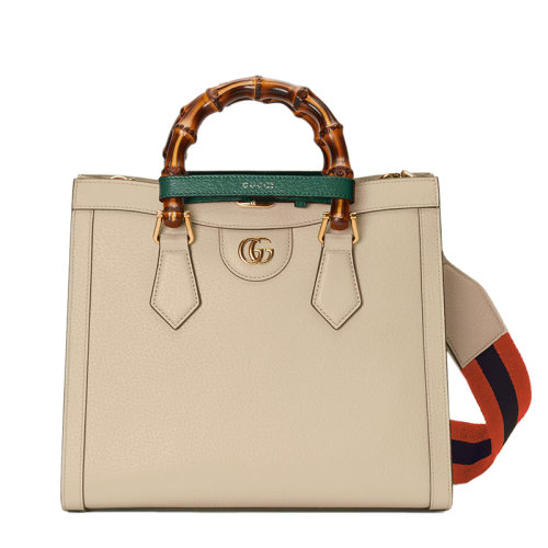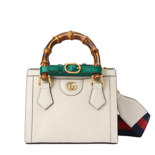 GUCCI/古驰 22春夏新款Diana系列 女士迷你白色皮革竹节绿饰带金扣红蓝肩带手提单肩托特包?702732UKMNT9294