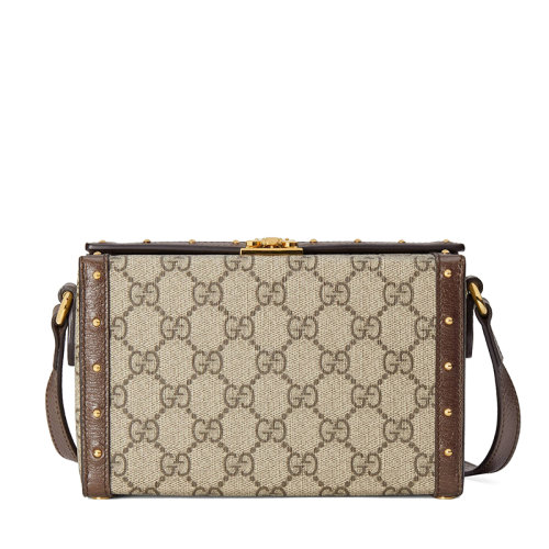 GUCCI/古驰 22新款 女士迷你棕色老花帆布棕色皮革滚边单肩斜挎硬质盒子包?678460HUHEG8358