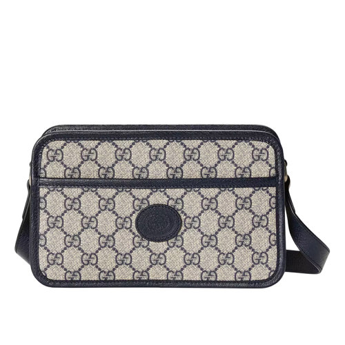 Gucci/古驰 22春夏新款 男士米色/蓝色提花帆布蓝色皮革肩带滚边老花单肩盒子包 658572K9GSN4075
