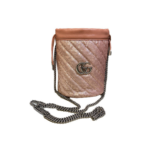 Gucci古驰 女士限量款粉色marmont亮片水桶包