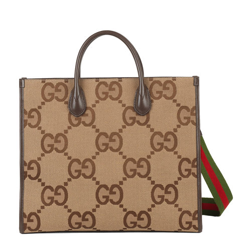 GUCCI/古驰 Aria系列 男士老花帆布棕色皮革包边闪亮金色调配件大号手提单肩斜跨托特包678839UKMDG2570