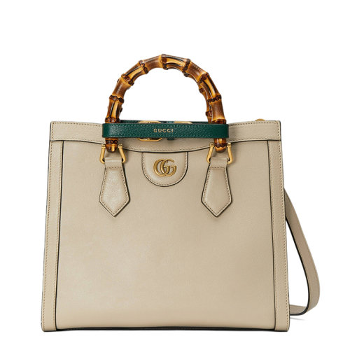 GUCCI/古驰 22春夏新款Diana系列 女士小号米色皮革竹节提手金扣单肩斜跨手提托特包66019517QET9690