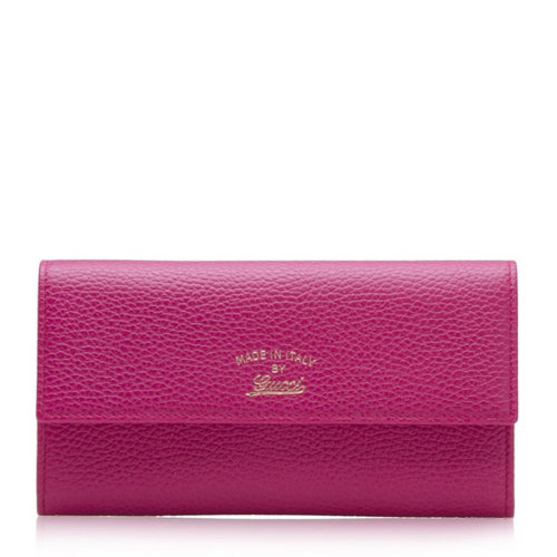 GUCCI/古驰 女士玫红色粒面牛皮经典字母徽标印花装饰按扣开合长款钱夹钱包卡包手拿包女包 354496-CAO0G-5614